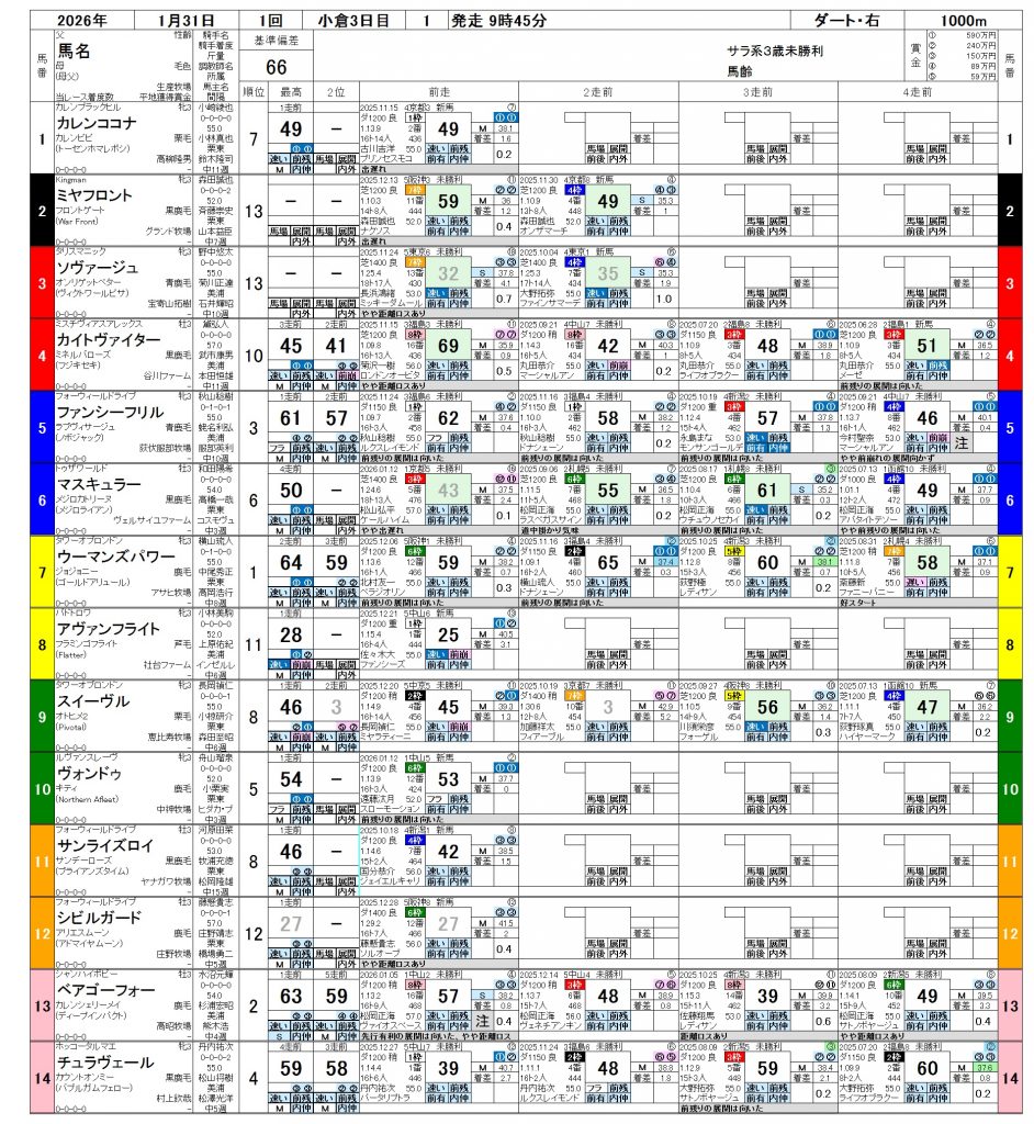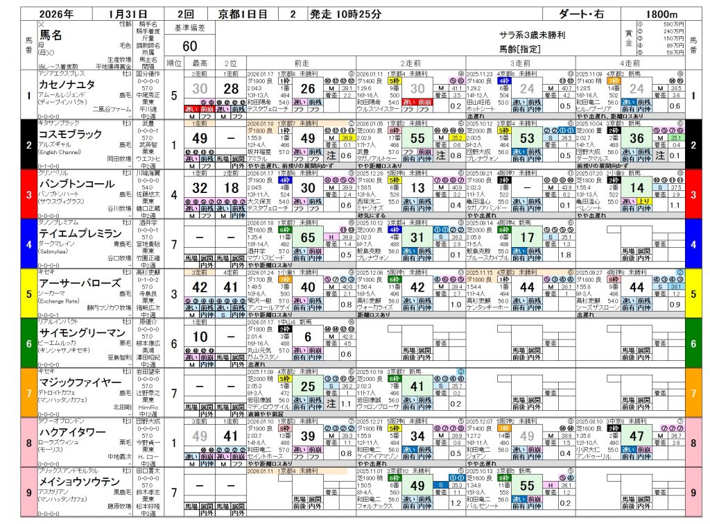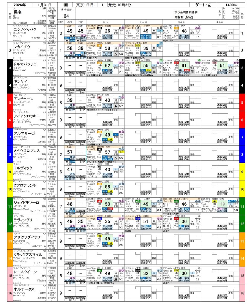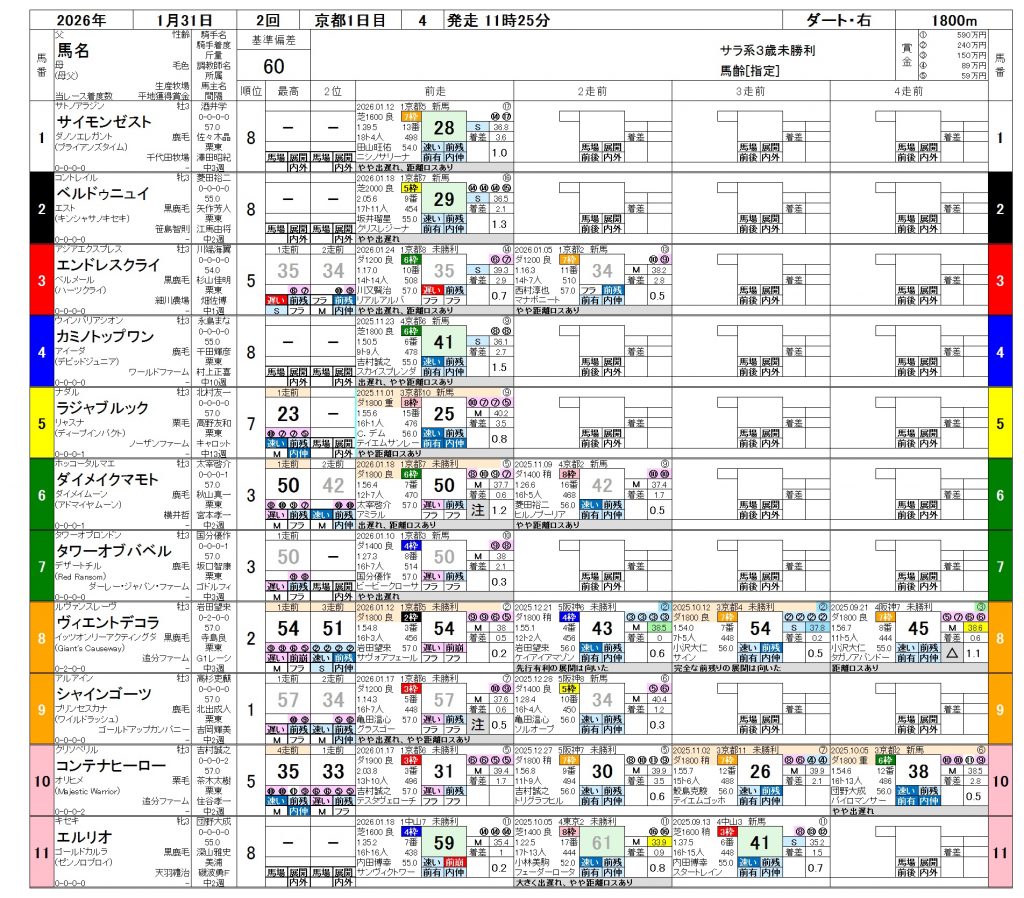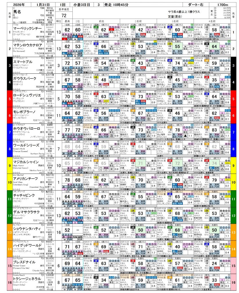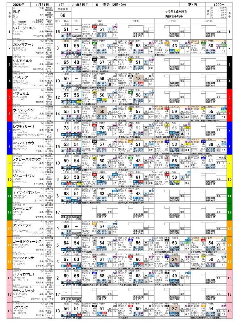 後半のレースは「指数上位馬の特徴・注意事項」が全レースに記載されているほか、「注目馬」「注意馬」が出現することも!