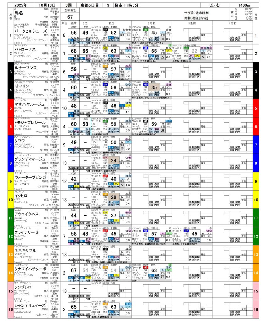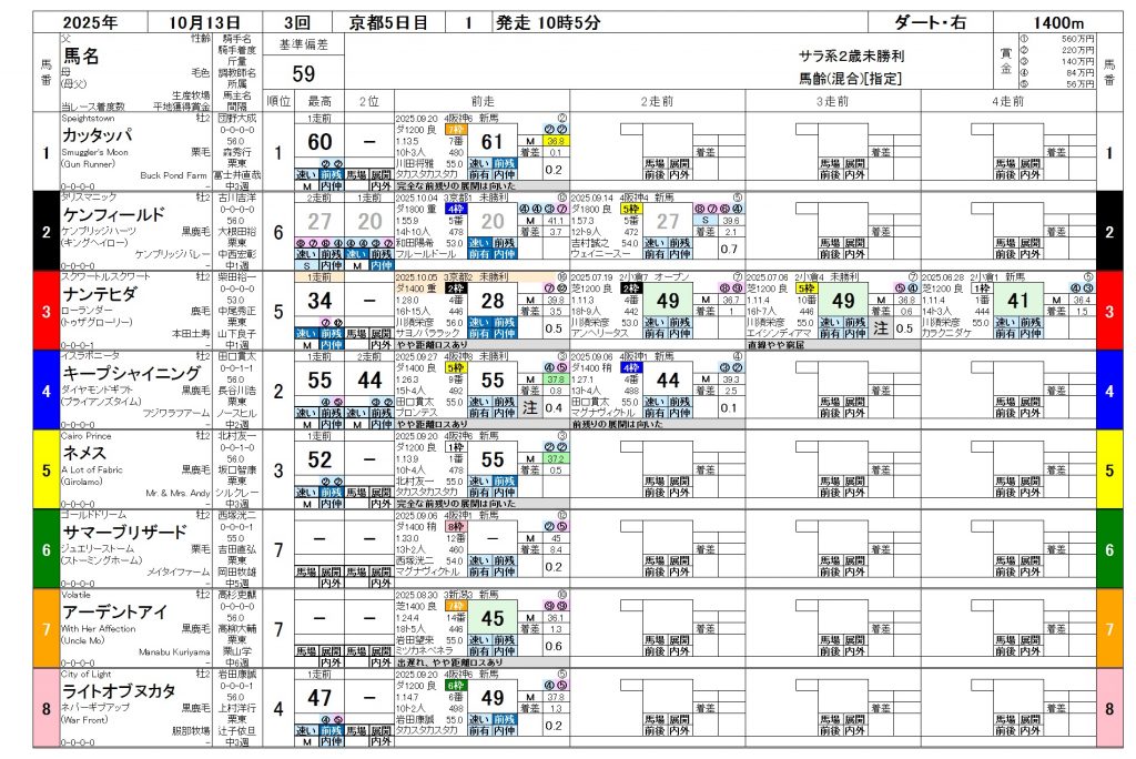 後半のレースは「指数上位馬の特徴・注意事項」が全レースに記載されているほか、「注目馬」「注意馬」が出現することも!