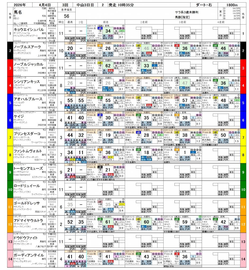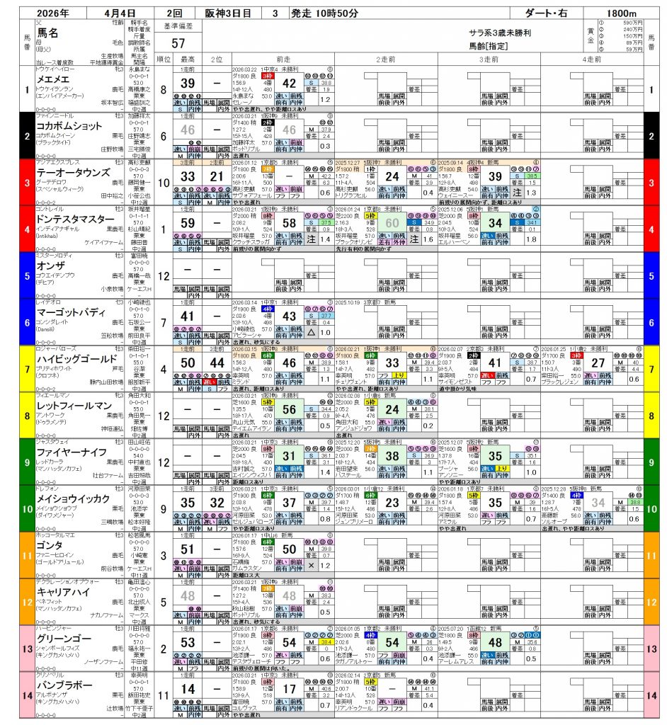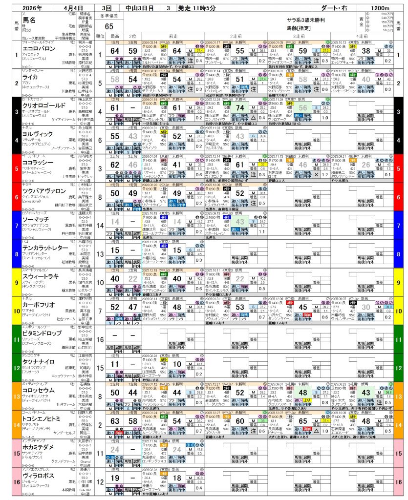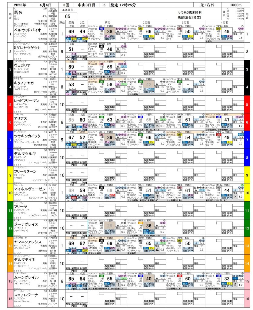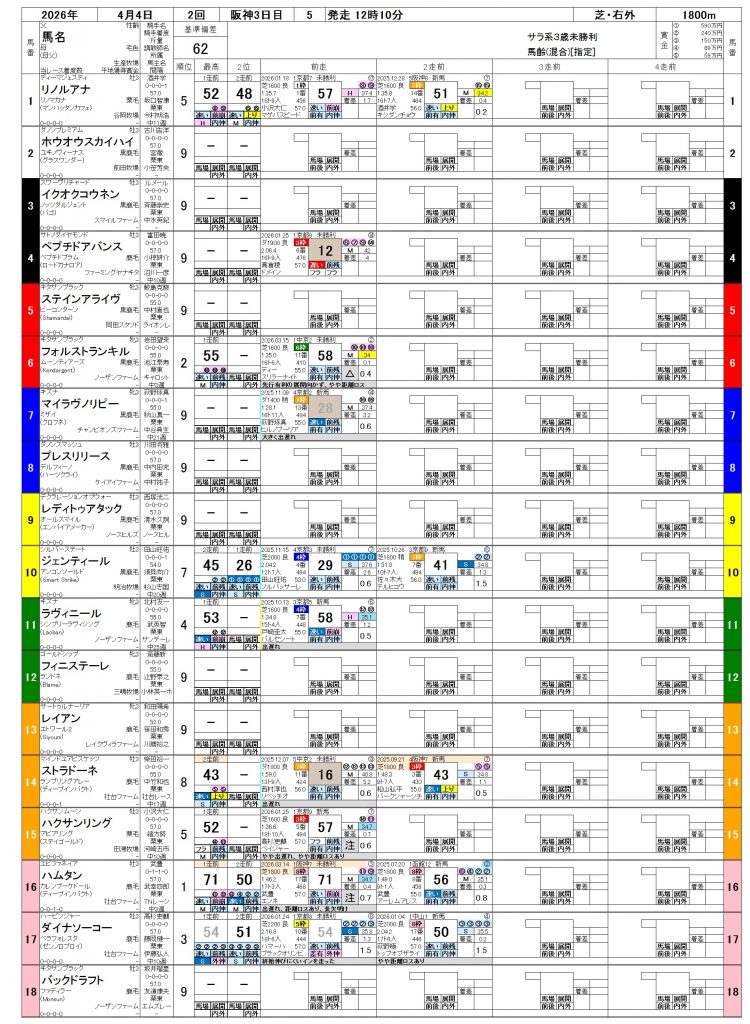 ※WIN5用に1着に特化した印となっております、通常の予想とは異なる場合がございますのでご了承下さい 。