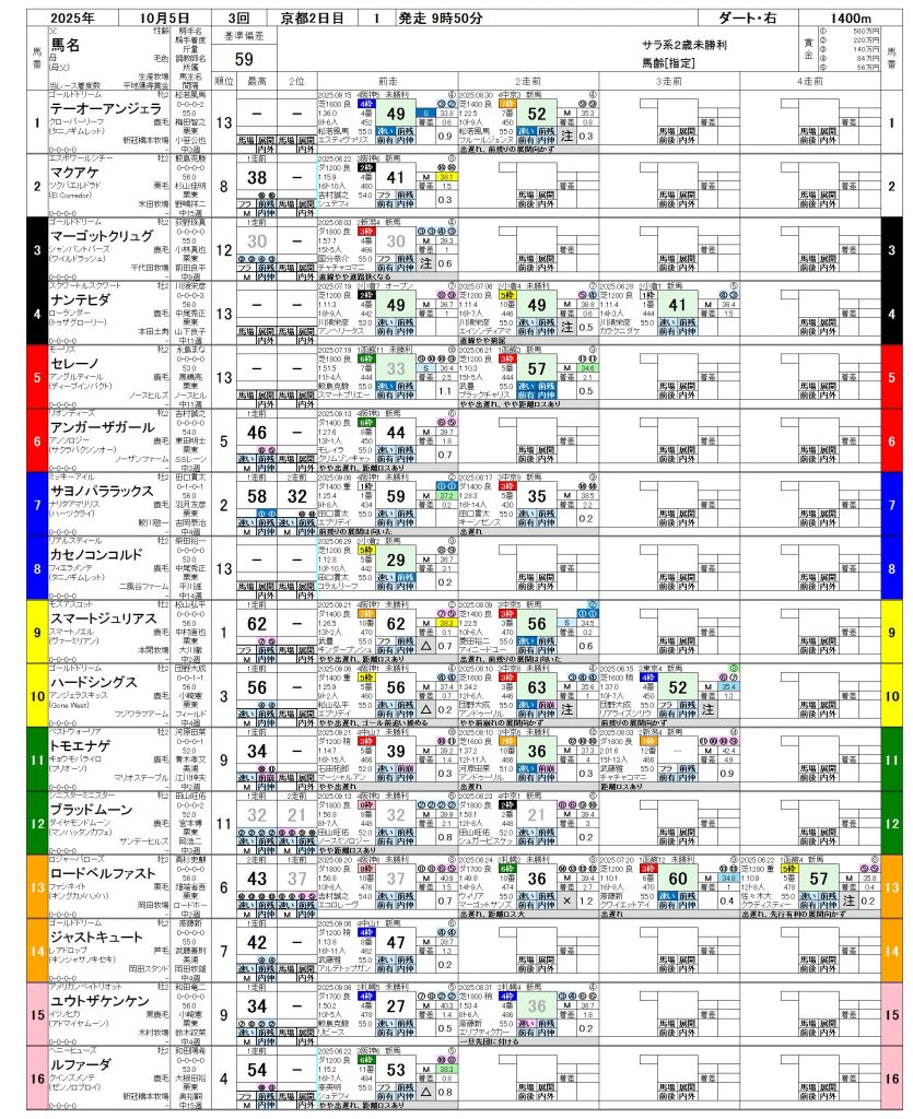 ※WIN5用に1着に特化した印となっております、通常の予想とは異なる場合がございますのでご了承下さい 。