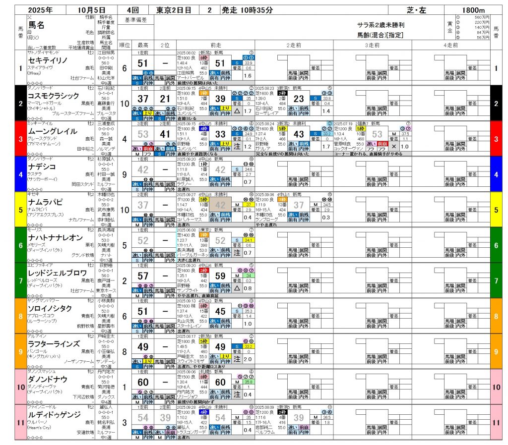 後半のレースは「指数上位馬の特徴・注意事項」が全レースに記載されているほか、「注目馬」「注意馬」が出現することも!
