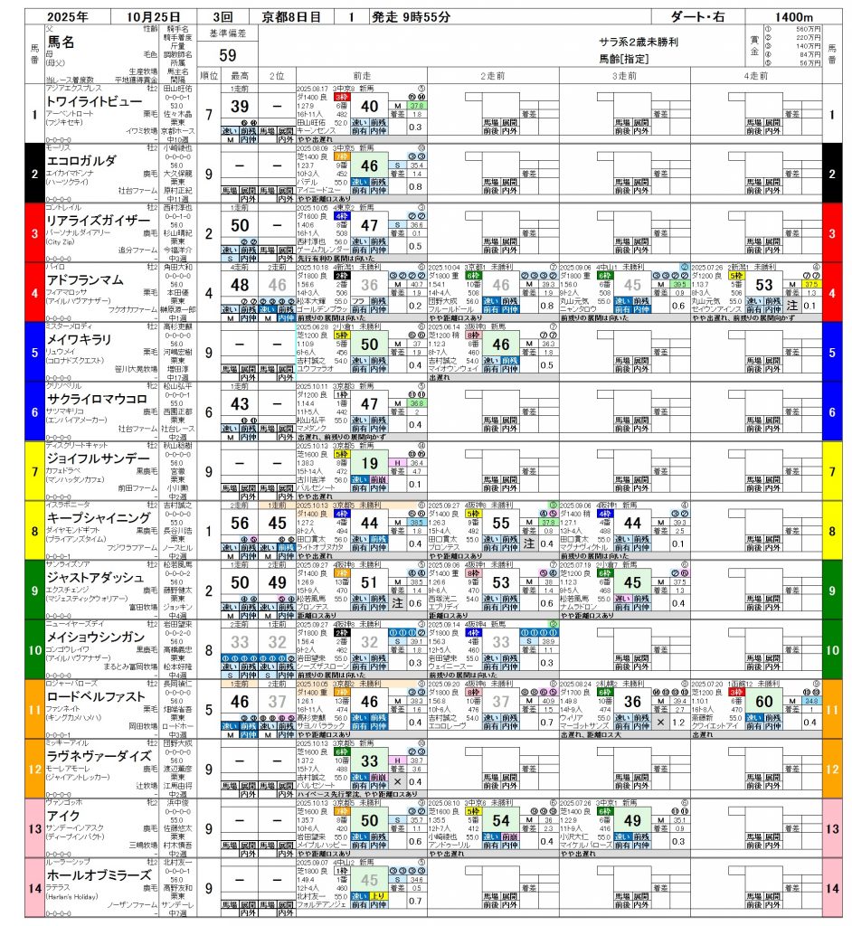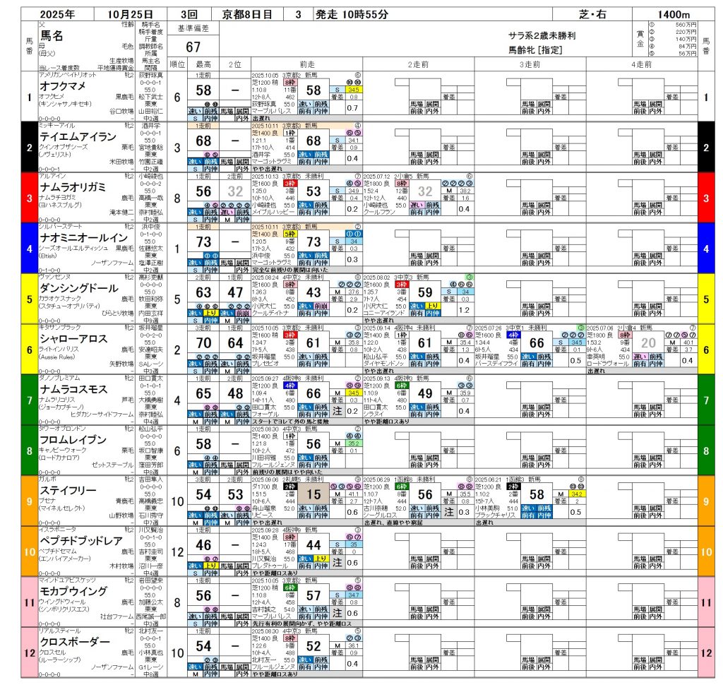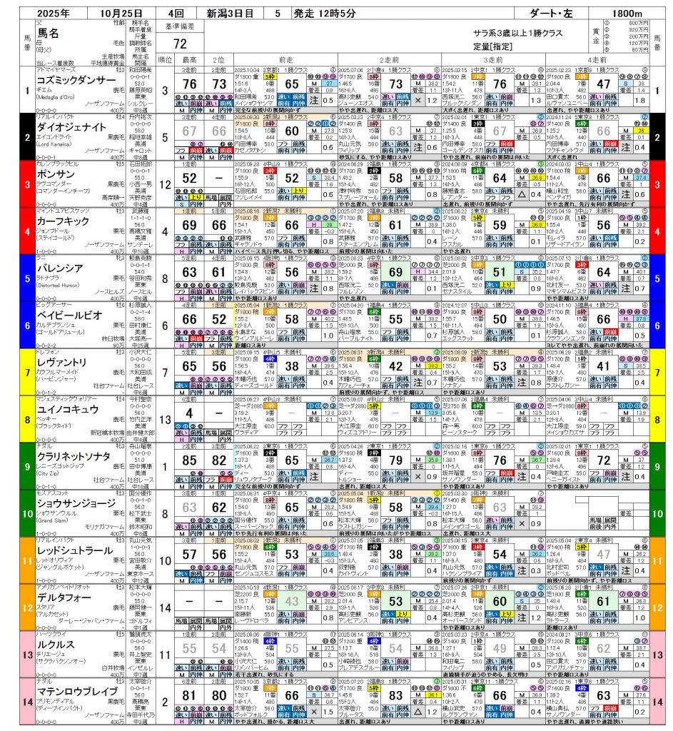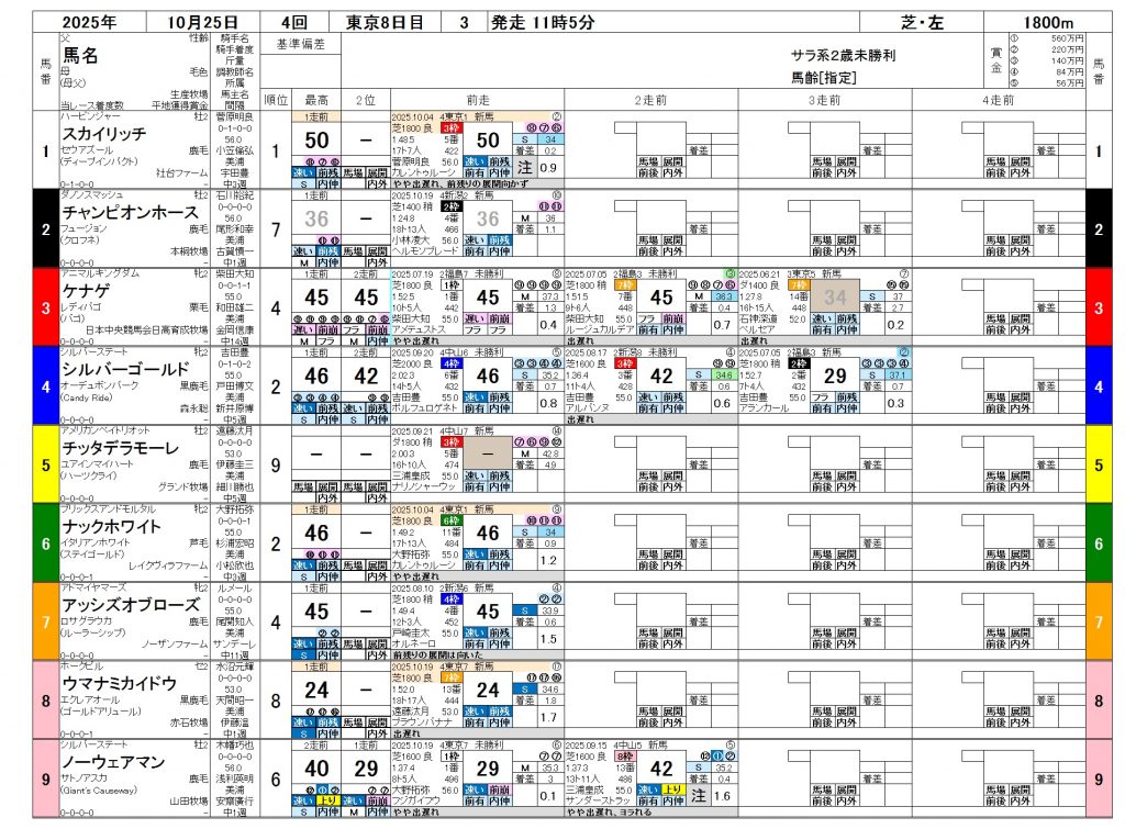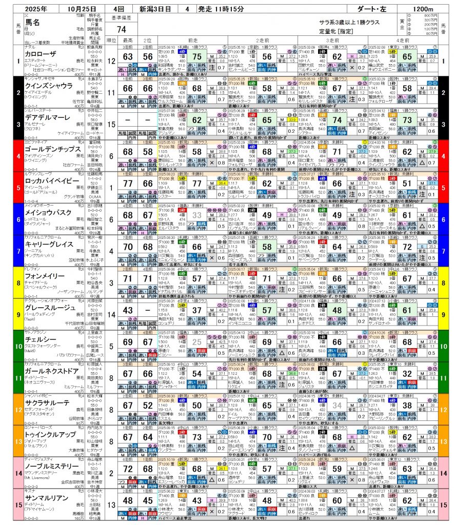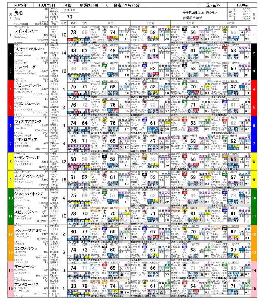 後半のレースは「指数上位馬の特徴・注意事項」が全レースに記載されているほか、「注目馬」「注意馬」が出現することも!