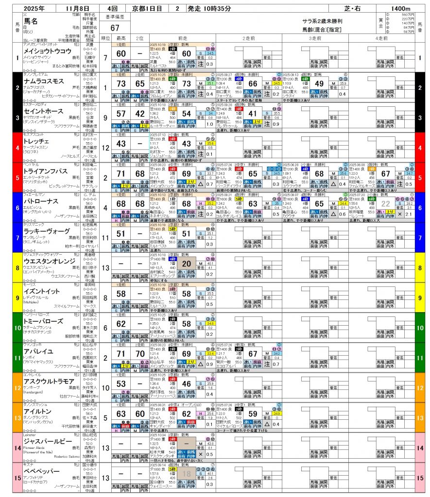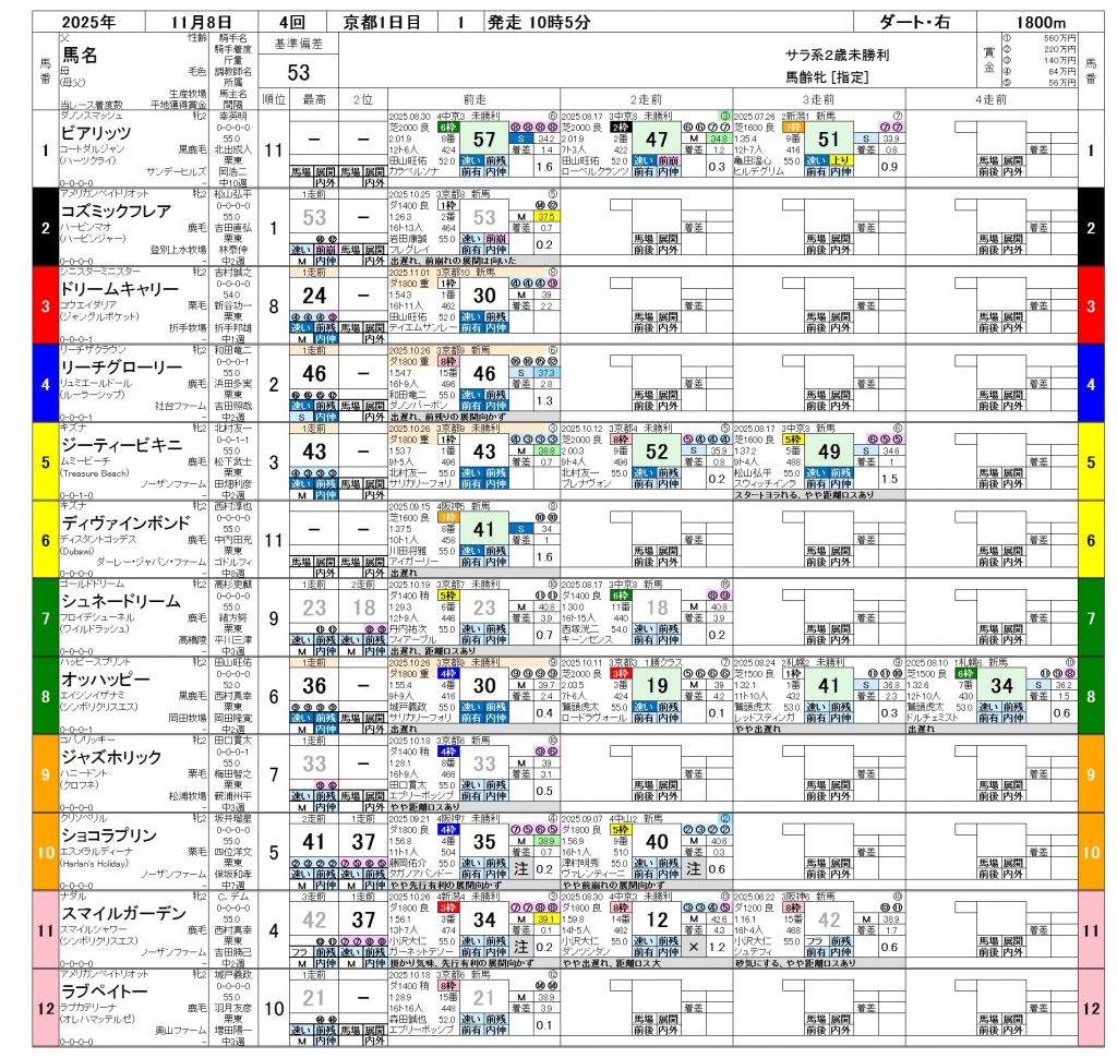 後半のレースは「指数上位馬の特徴・注意事項」が全レースに記載されているほか、「注目馬」「注意馬」が出現することも!