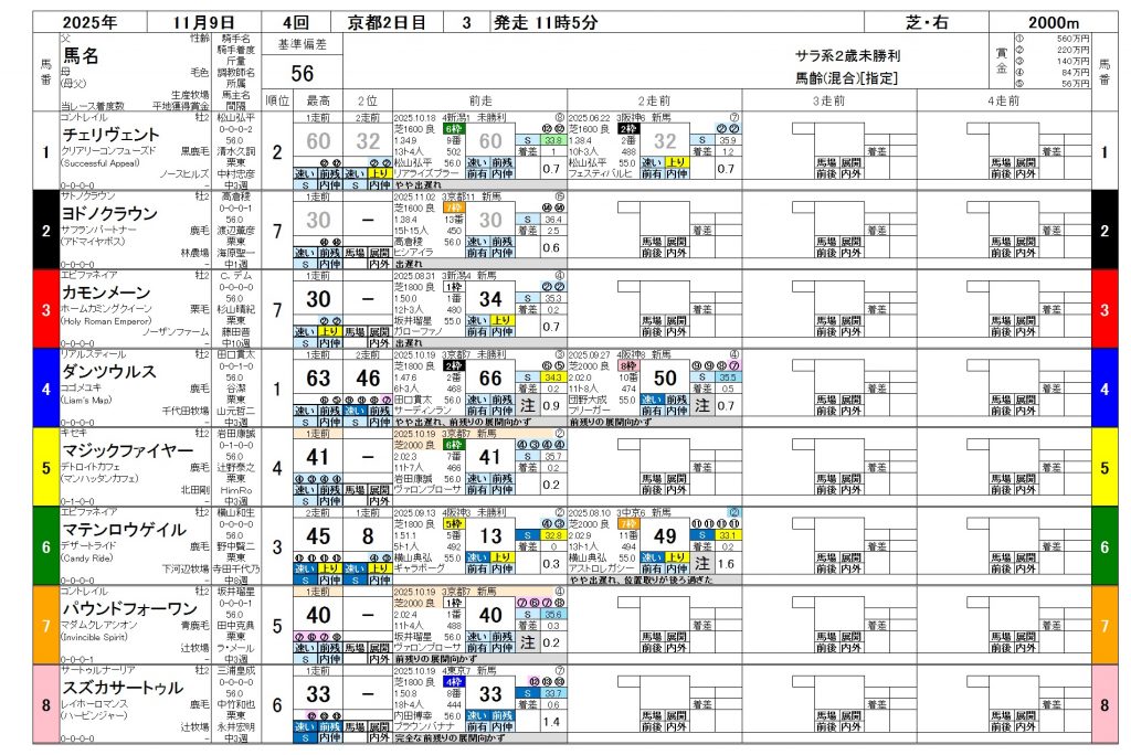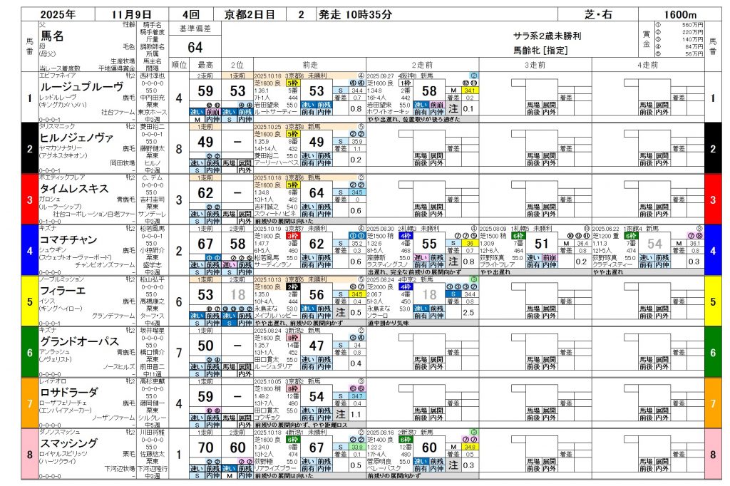 後半のレースは「指数上位馬の特徴・注意事項」が全レースに記載されているほか、「注目馬」「注意馬」が出現することも!