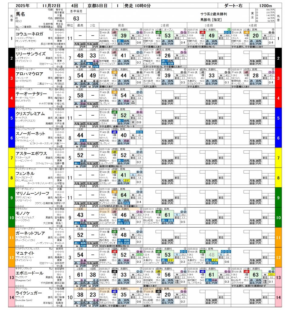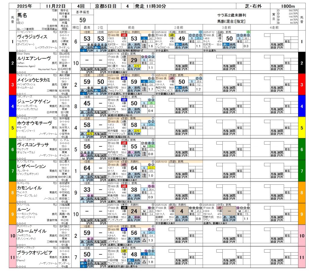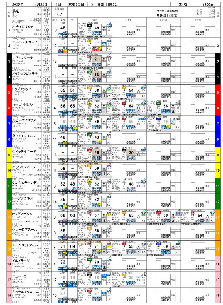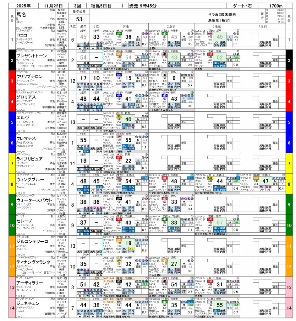 後半のレースは「指数上位馬の特徴・注意事項」が全レースに記載されているほか、「注目馬」「注意馬」が出現することも!