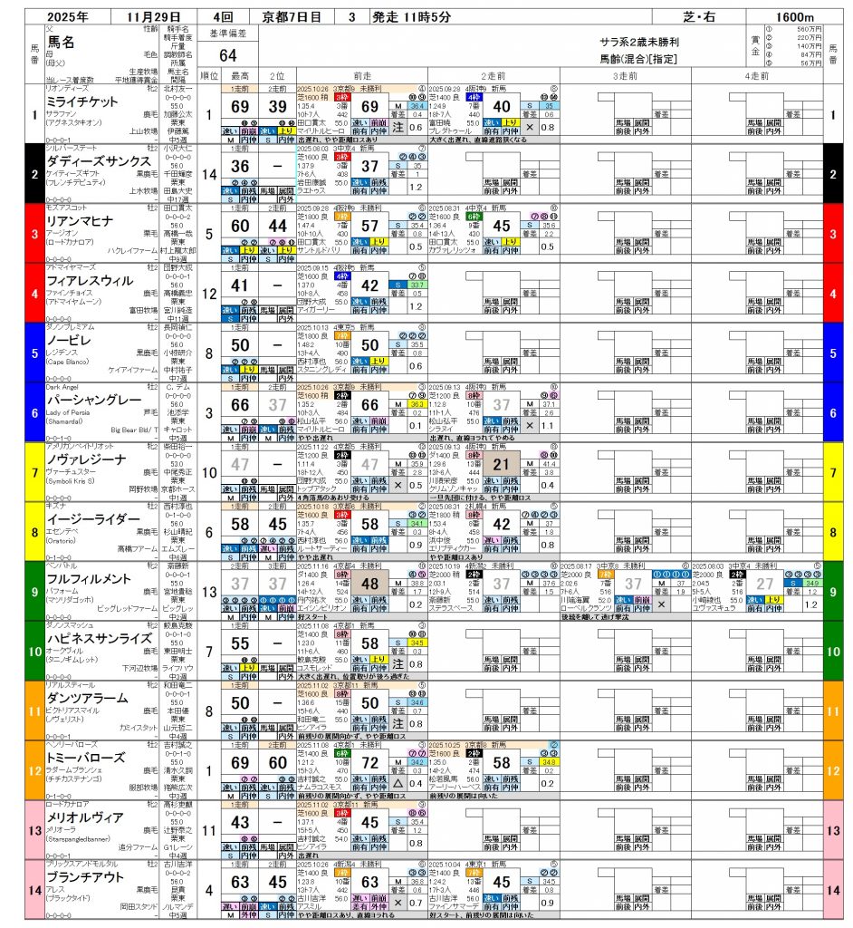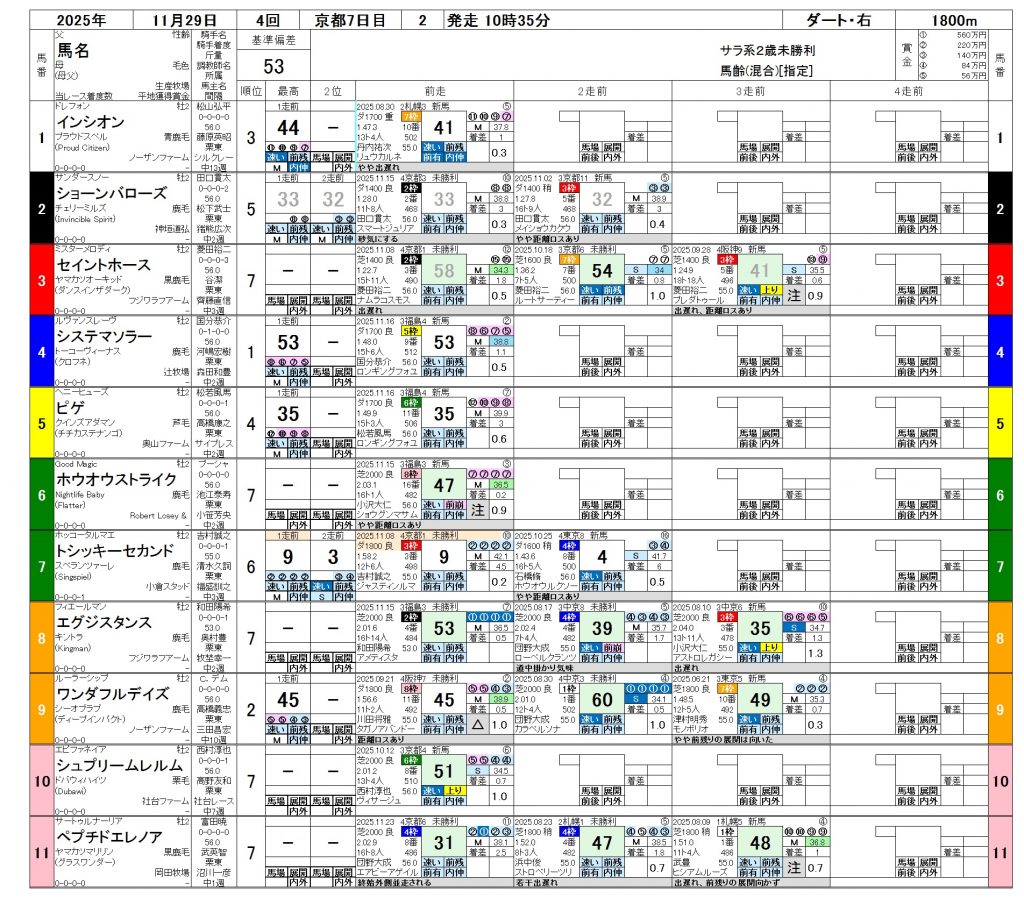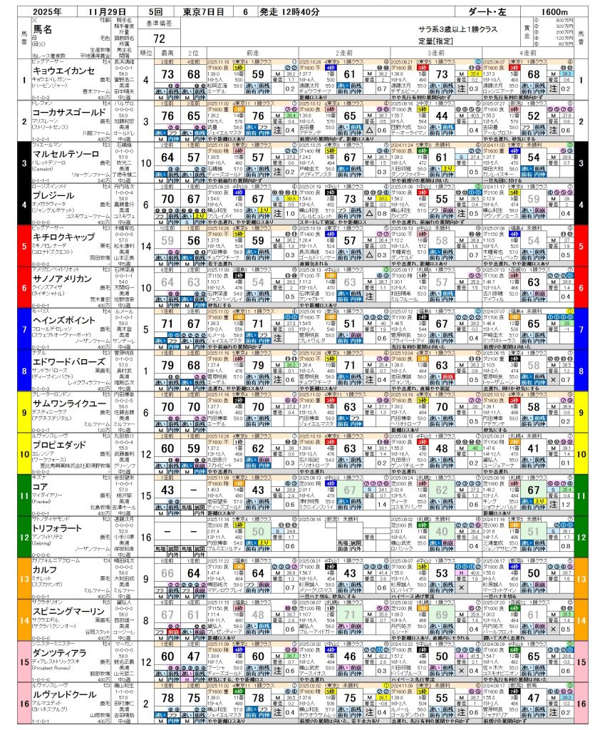 後半のレースは「指数上位馬の特徴・注意事項」が全レースに記載されているほか、「注目馬」「注意馬」が出現することも!