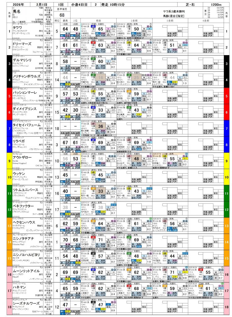 ※WIN5用に1着に特化した印となっております、通常の予想とは異なる場合がございますのでご了承下さい 。