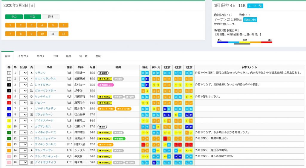 投稿日: 2020年3月8日2020年3月8日 投稿者: 吉川3月8日 WIN5出馬表 WIN①阪神10R WIN②中山10R WIN③中京11R WIN④阪神11R WIN⑤中山11R 3月8日WIN5予想はHP内で公開しますので、参考にしてください。 https://win-oku-keiba.com/win5.php?id=166